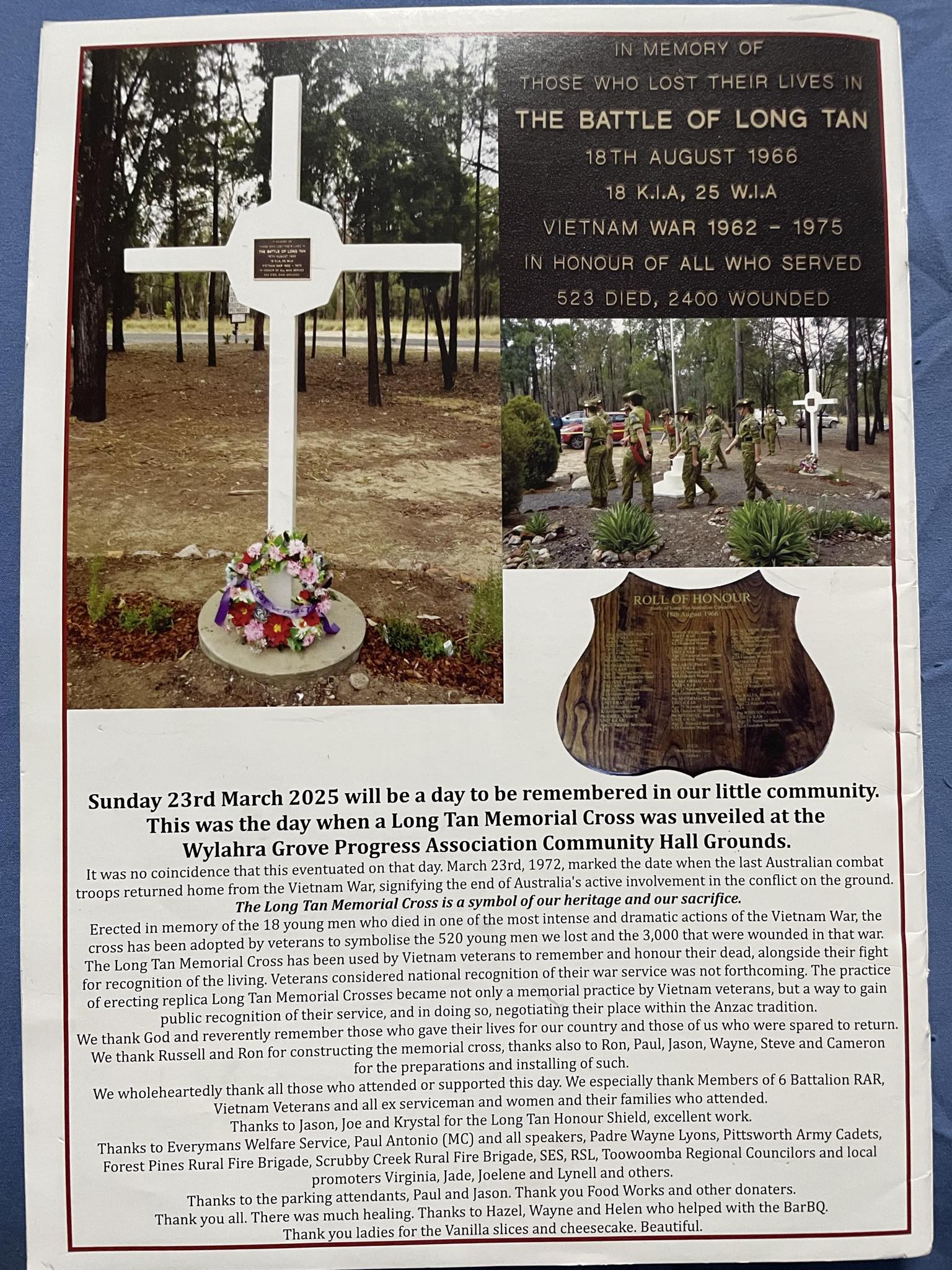 Millmerran Downs Long Tan Cross Memorial