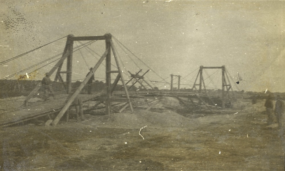 Hugh’s company were put to work near Armentières, taking responsibility for the demolition of bridges over the river Lys, as well as attending to a number of emergency floating bridges. The weather was so cold that the river froze completely and could be crossed by horses and wagons. In March, the company left to assist with preparations for the attack on Messines Ridge, which meant establishing improved and extended trenches, headquarters for various battalions, camouflage screens for artillery and ‘dumps’ for stores. Following the battle of Messines (7 June 1917), the company worked until mid-July with their infantry brigade, holding their front-line areas, after which time they were relieved and sent back.